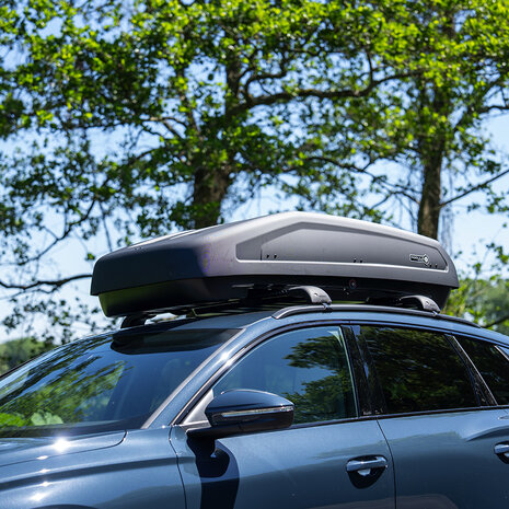 De Modula dakkoffer Evo 470 liter - Mat zwart is uiterst geschikt voor vervoeren van extra bagage. Zo kan een dakkoffer multifunctioneel zijn en van pas komen voor een weekend weg, strandvakantie, kampeervakantie en meer. Om een dakkoffer te bevestigen op jouw auto dien je dakdragers te hebben. Ook is het verstandig om vooraf op te meten welke maat dakkoffer je nodig heeft. Dit kan je eenvoudig doen door de achterklep open te zetten en vanaf dat punt te meten naar het voorraam van jouw auto. Vervolgens tel je daar 10/15 centimeter bij op en weet je de ideale lengte van de dakkoffer.